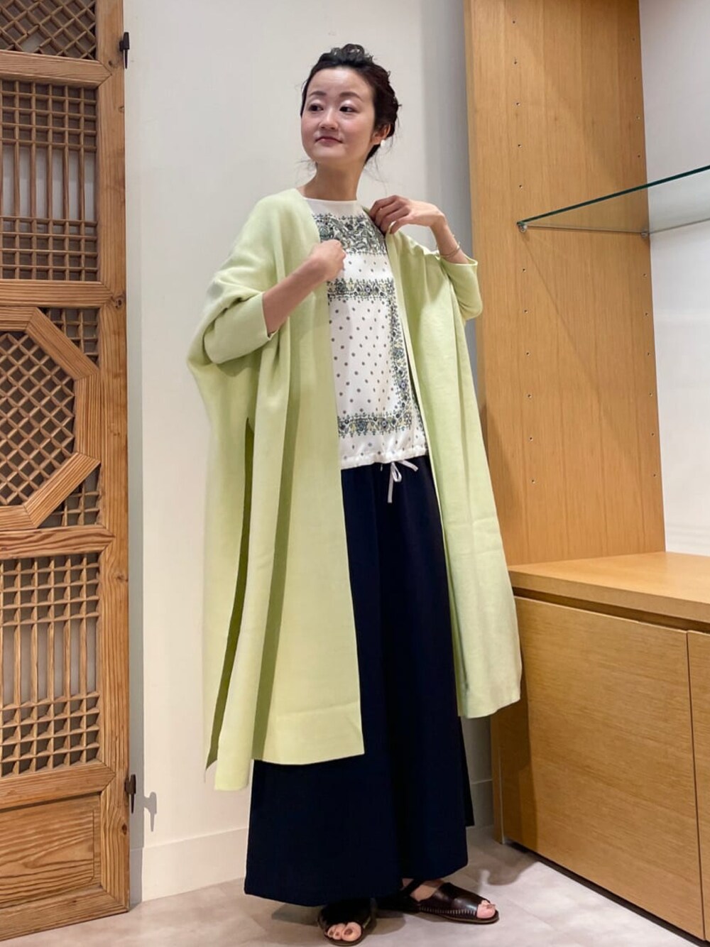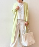 【cardigan】着用サイズ:1 春らしいカラーが目を惹くヒラヒラカーディガン。 サイドの深めなスリットで、ワンピースやスカートなどの上に羽織った時にも重たくみえません。 ボリュームのあるお袖の上にも難なく羽織れるのも嬉しいです。 1サイズ着用で膝が隠れる長さ。 軽めのアウターとして、これからの時期に重宝します。 洗濯 :手洗い可 伸縮性:あり 透け感:なし 【knit】着用サイズ:F コレド店でも人気のフロントスカーフニット。 インナーとして春アウターの下に入れても映えます。 背中とお袖がニットなので伸縮があり着やすいです。 裾を絞って長さ調節ができます。 洗濯 :ドライクリーニング 伸縮性:後ろとお袖はニットなのであり 透け感:なし 裏地 :なし 【pants】着用サイズ:1 ウエストリブで楽に穿けるツイードパンツ。 フレアシルエットで腰回りもスッキリ見え、1サイズ着用でくるぶしが見える着丈。 ネイビーでも生地に光沢があるので軽やかに見えます。 洗濯 :手洗い可 伸縮性:ウエストはゴムなのであり 透け感:なし 裏地 :あり 【bag】 NOVIAのトートバッグも全色入荷しています。 A4サイズも縦にすっと入り、パソコンなどの持ち運びにも便利です。 【shoes】 sample