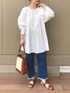 【blouse】着用サイズ:F 袖がシャーリングになっていて女性らしいデザインのブラウス。 肩周りのパフがポイントに◎ 透け感はありますが、インナーにカラー物のキャミソールやハイネックなど合わせるのもおすすめです! 洗濯 :手洗い可 伸縮性:袖口のみあり 透け感:あり 裏地 :なし 光沢感:なし 【bottom】着用サイズ:F 裾がフリンジのようになっているカジュアルなデニム。 サイズはフリーサイズですが、多少ストレッチも効いているので穿きやすいです◎ シルエットはストレート。 着丈は短めなので春夏の暖かい時期はサンダルと合わせるとスッキリ! 洗濯 :手洗い可 伸縮性:多少あり 透け感:なし 裏地 :なし 光沢感:なし 【bag】 GIANNI NATARO CAROL J 【shoes】 スタッフ私物