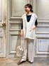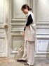 【inner】着用サイズ:F コットン100%のクルーネックのインナー。 アワユキシリーズとは異なりリブ仕様に織り上げているので これからの季節着やすいサラッとした肌触りです。 ベストやジャケット、ワンピースのインナーに重宝します。 洗濯 :手洗い可 透け感:なし 伸縮性:あり 【vest】着用サイズ:F 日本製のレースを使用した春らしいベスト。 幾何学柄のレースなので可愛くなりすぎず 大人な印象で着ていただけます。 身幅と袖口周りはゆったりしており、 どんなトップスやワンピースの上からでも重ねやすいです。 同じ柄のパンツ合わせが簡単にお洒落見えするのでおすすめです。 洗濯 :手洗い可 透け感:なし 伸縮性:多少あり 裏地 :あり 【pants】着用サイズ:1 ベストとセットアップで着れるワイドパンツ。 ウエストは総ゴムなので楽に着れます。 裏地が少し短めになっているので、 レースから足首が透けて軽やかな雰囲気に。 私の身長で1サイズはくるぶしが隠れる着丈です。 洗濯 :手洗い可 伸縮性:ウエスト部分あり 透け感:なし 裏地 :あり 【bag】 MARCO MASI / マルコマージ