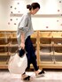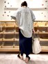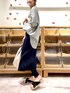 【blouse】着用サイズ:F 人気のストライプポケットシャツが店頭に再入荷しています。 ナチュラルなシワ感を残した生地なので、ラフに気兼ねなく着ていただけます。 ハリ感のない軽い生地なので、これからの時期に羽織りとして着るのにも重宝しそうてす。 洗濯 :手洗い可 伸縮性:なし 透け感:多少あり 裏地 :なし 【pants】着用サイズ:F スカートとレギンスがウエストで縫い合わされたデザインのボトムス。 スカート部分は巻きスカートのようになっていて、レギンス部分はリブなので伸縮性がありとても穿き心地が良いです。 ブラウスやTシャツなど合わせて、リラックス感のあるコーディネートになります。 いつも入荷すると完売が早いデザインなので、気になられたらお早めに。 伸縮性:あり 透け感:なし 裏地 :なし 【bag】 MARCO MASIの丸みのあるトートバッグ。 キャンバス地と持ち手がレザーなので軽く、オールシーズン使える生地感。 ブラウスやカットソーなと薄手な生地でしたら肩掛けもできます。 【shoes】 FABIO RUSCONIのスエードサンダル。 しつかりホールド感もありつつ、パッとラフに履けて楽ちんです。 リネンのワイドパンツなどに合わせても素敵です。