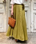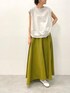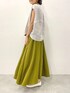 【cutsewn】着用サイズ:F 背中がリネンでさらっと着心地の良いカットソー。 ライトグレーのカラーはカラーボトムとも相性が良いです。 ビアズリーオリジナルで作られたチェックの生地がさりげなく、普段柄を着ない方でも着やすいお色です。 伸縮性:なし(前身頃はカットソーなのであり) 透け感:なし 裏地 :なし 【skirt】着用サイズ:F たっぷり生地を使い、揺れるドレープが綺麗なフレア巻きスカート。 ウエストにぐるっと一周紐が通り、左のウエストで結んで留めるデザイン。 内側にはボタンが付くのでひらっとめくれる心配もありません。 明るめなカーキのお色で、ラフにTシャツ合わせも素敵です。 着丈は私の身長でくるぶし見える長さになります。 伸縮性:なし 透け感:なし 裏地 :なし 【shoes】 真っ白なレザーのスリッポン。 ソールのさりげないステッチがポイントです。