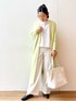 【tops】着用サイズ:1 定番人気シリーズのフロント刺繍。 軽く着れる素材感なので、温度調節が難しいこの季節にぴったりです。 後ろはカットソーで腰回りも隠れるのでバランスもとりやすい一点。 洗濯 :手洗い可 伸縮性:後ろはあり 透け感:少しあり 光沢感:なし 【outer】着用サイズ:1 店頭人気アイテム。 しっかりめのコットン素材なのでコート感覚でさっと羽織れる優秀アイテム。 春らしいカラーやベッシックなカラーと豊富にありますのでお好みを見つけて下さいね。 洗濯 :手洗い可 伸縮性:あり 透け感:なし 裏地 :なし 【bottom】着用サイズ:1 こちらも店頭人気アイテムです。 軽い素材で、ストレッチもあるので履き心地抜群です。サイズは真ん中の1サイズを着用しています。 洗濯 :手洗い可 伸縮性:あり 透け感:なし 裏地 :白のみ有り 【shoes】着用サイズ:38size(24.5~25cm) 柔らかい履き心地のファビオのフラットシューズ。踵にはゴムが入っていてすっぽりと履きやすい仕様です。 【bag】 ラフィア素材の軽いバッグ。 しっかりと荷物も入るサイズ感で斜め掛け用の紐もセットに。