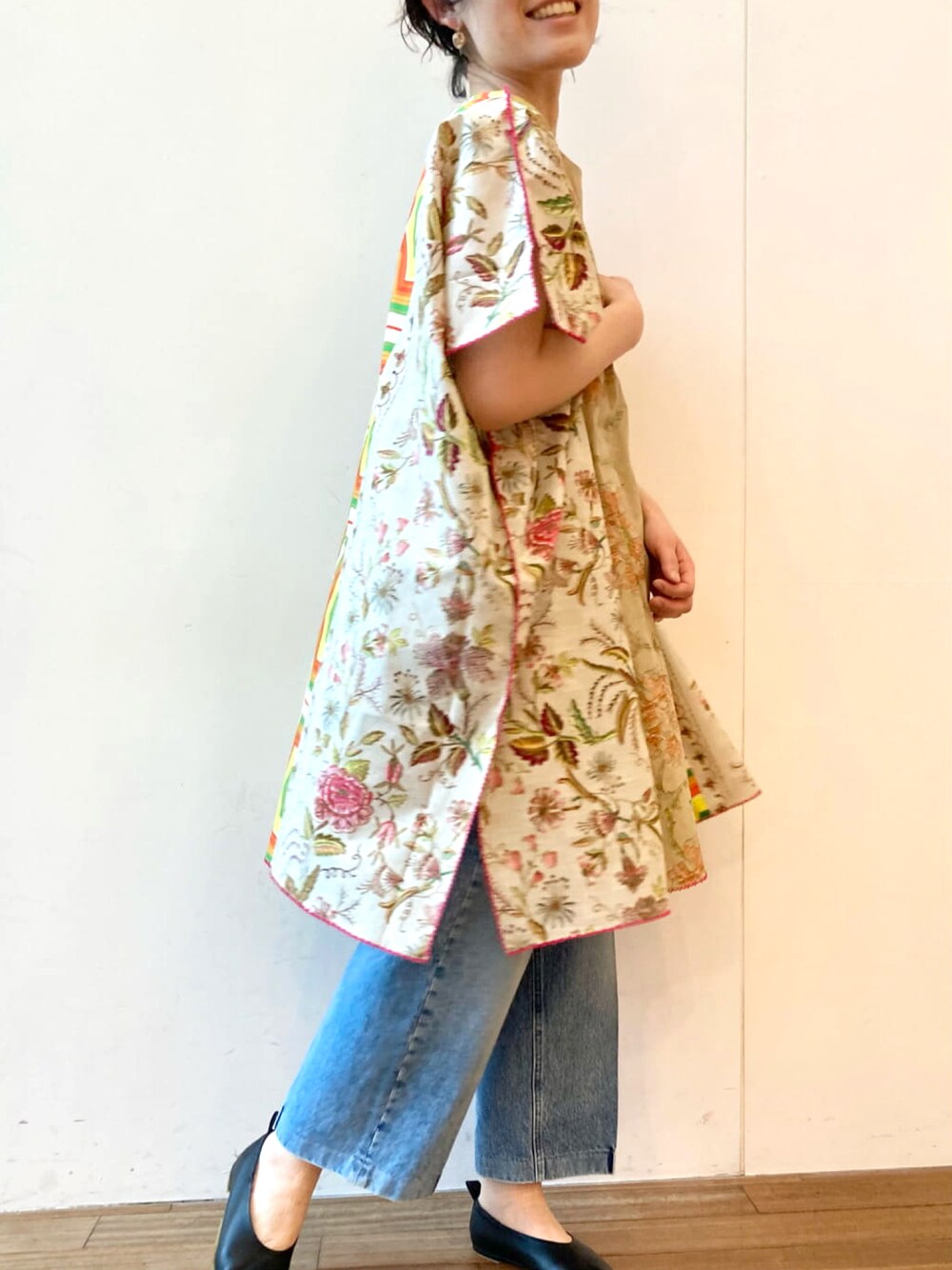 ※販売数が少ない商品です。 コーディネートのご参考になればと掲載しております。 在庫有無につきましては各店にお問い合わせください。 《Pierre-Louis Mascia》ワンピース BEZ1021109D0008 ¥48,400(税込) 【tops】着用サイズ:F 様々な柄の組み合わせとビビッドなピンクのハンド刺繍が可愛い一点。薄手のコットン素材で着心地はとても軽いです。 パンツでサラッと合わせやすいデザイン。 洗濯 :手洗い可 伸縮性:なし 透け感:なし 光沢感:なし 【bottom】着用サイズ:24 スッキリシルエットのデニムパンツ。 くるぶしが少し見える丈感でした。 洗濯 :手洗い可 伸縮性:なし 透け感:なし 裏地 :なし 【shoes】着用サイズ:38size(24.5~25cm) 柔らかい履き心地のファビオのフラットシューズ。後ろにはゴムも付いていてすっぽりと履ける仕様です。 【bag】 小ぶりなバッグはサクッと出かける際に使いやすいですよね。斜め掛けも可能な長さでした。