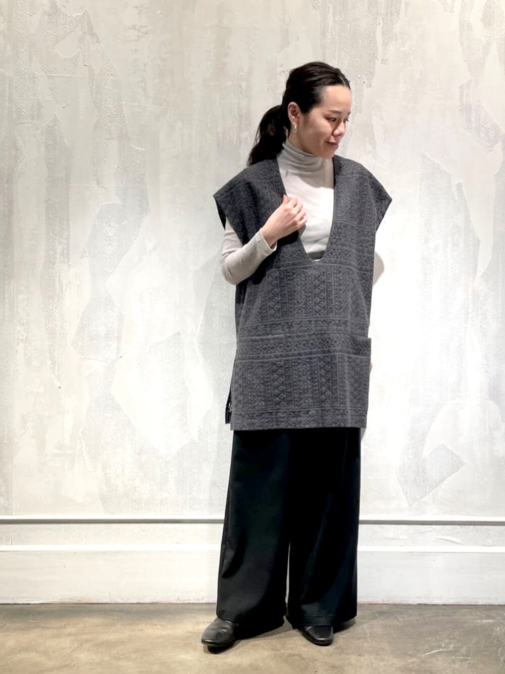 【tops】着用サイズ:F オーガニックコットン混紡の 日本製のレースを使用した ベストタイプのプルオーバー 幾何柄のレースなので甘すぎず 大人にも似合うレースのアイテム 腰回りにかかる着丈なので ボトムを選ばないデザインです 洗濯 :手洗い可 伸縮性:なし 裏地 :あり 【inner】着用サイズ:F 「コナユキ」のインナーシリーズ サラサラとした肌触りが特徴な 心地良い肌触りで どんな季節にも着用できます 洗濯 :手洗い可 伸縮性:あり 透け感:あり 【bottom】着用サイズ:0 ウエストリブシリーズ テンセルデニムに新色登場 サラサラとした素材感なので シーズン問わずに着れます 洗濯 :お家で洗える 伸縮性:あり 透け感:なし 裏地 :なし