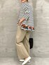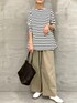 【cutsewn】着用サイズ:F 後ろの裾にテープ刺繍が施されたカットソー。 光沢のあるテープと、コットンのテープを使用し、メリハリのある華やかな刺繍になっています。 程よくAラインで広がりすぎず、腰回りカバーしてくれるのでこのデザインは着やすくて方人気です。 洗濯 :手洗い可 伸縮性:あり 透け感:なし 裏地 :なし 【pants】着用サイズ:F 高密度な綿100%の生地を丹念にもみ洗いして、ヴィンテージ調の見え方にしたパンツ。 シャカっとした柔らかい薄手の生地で、時期長く、軽やかに穿いていただけます。 ウエストにタックが入り、腰回りがペタッとしない立体感のあるデザイン。 内側に紐が通っているのでウエスト調節できます。 洗濯 :手洗い可 伸縮性:なし(ウエストはゴムなのであり) 透け感:なし 裏地 :なし 【bag】 sample 【shoes】 軽めなレザースリッポン。 柔らかい革でとても履きやすいです。 ブラックとホワイトの2色展開です。