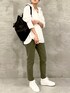 【blouson】着用サイズ:F パーカーのように軽く羽織れるシャツフーディ。 春夏の羽織りや日除けに重宝しそう。 裾がシャツカットなのと、ダブルジップなので、サロペットやスカートともバランスも取りやすいです。 昨年買えなかったので今年はゲットしたい1枚です。 洗濯 :手洗い可 伸縮性:なし 透け感:なし 裏地 :なし 【pants】着用サイズ:1 綿ナイロンのタックパンツ。 トラックパンツよりもスリムで、パギンスよりもゆとりがあるシルエット。 かなりストレッチが効いているので、膝の曲げ伸ばしもしやすく、ストレスフリーで穿いていただけます。 ウエストは後ろだけゴムなので、腰回りスッキリ。 1サイズ着用でくるぶしすっきり見える着丈。 ハイカットのスニーカーでもバランス良く合わせられます。 洗濯 :手洗い可 伸縮性:あり 透け感:なし 裏地 :なし 【bag】 HARBOUR 2nd。 リュックのタイプはA4サイズもすっぽり入る大きさで、書類の持ち運びもしやすいです。 ウエストポーチのタイプは必要最低限の貴重品が入る大きさ。 使い込むうちに風合いが増すオールレザーで、男女兼用で使えます。 【shoes】 着用サイズ:38 メゾンブランドのスニーカーも手がけるファクトリーのレザースニーカー。 ハイカットのタイプは後ろにジップ付きで脱ぎ履きもしやすい。 かかと部分にはパットが付いているので、ジップが直接肌に当たらなかったり、足首が細い方にも安心です。