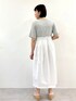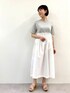 【one-piece】着用サイズ:F ニット×布帛がコンビになったワンピース。 ニット素材は薄手でさらっとしているので 春夏にとても着やすいです。 ホワイト×グレーの組み合わせが 上品な印象に。 153cmの私で、ミモレ丈の長さになります。 伸縮性:ニット部分はあり 透け感:あり(ペチコート推奨) 裏地 :なし 【sandal】着用サイズ:37 (普段24cm) 気軽にスタイルアップできる、春夏らしいサンダル。 ストラップ部分は柔らかいレザーを使用しています。 軽さのあるソールなので 足の負担にもならず、歩きやすいです。