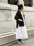 【jacket】着用サイズ:F シアー感のある素材で軽さのあるジャケット。 テーラードですがゆったりシルエットで、気軽にさっと羽織れます。 後ろが長めのデザインなので、スッキリしたパンツで合わせても良さそうです。 折り返したお袖の裏地がポイントになります。 伸縮性:なし 透け感:後ろ身頃あり 裏地 :なし 【one-piece】着用サイズ:F LIVETARTのティアードワンピース。 ふわりと軽い生地感で、たっぷり入るティアードが女性らしく、涼しげです。 私の身長でくるぶしがしっかり見える着丈です。 伸縮性:なし 透け感:気にならない 裏地 :あり 【pants】着用サイズ:1 ストレッチ抜群のデニムパギンス。 洗い替えで何本か揃える方もいらっしゃるくらい穿きやすいパンツです。 洗濯 :手洗い可 伸縮性:あり 透け感:なし 裏地 :なし 【bag】 Sans Arcidetのラフィアバッグ。 柔らかいラフィアで、使っていくうちにもツヤ感がでてきます。 500mlのペットボトルも横にして入るサイズ感です。 【shoes】 SAANASのクロスサンダル。 ゴールドもこれからの時期に足元軽く見えるのでオススメです。