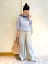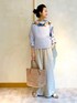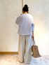 【blouse】着用サイズ:F 華やかな襟ぐりの刺繍が目をひくブラウス。 刺繍の中でも糸の太さが違っていて、近づいたときにも刺繍に表情があり素敵です。 ブラウスの生地はリネンなのでとても軽やかで涼しく、ゆったりしたシルエットでストレスフリーです。 夏場にお袖を出したくない時にも、涼しく1枚で着られるブラウスです。 洗濯 :手洗い可 伸縮性:なし 透け感:多少あり 裏地 :なし 【pants】着用サイズ:2 ウエストリブリネンストレッチパンツ。 リネン素材には珍しく生地にもストレッチが効いていて座ったりする時も楽ちん。 これからの時期手放せなくなりそうなパンツです。 洗濯 :手洗い可 伸縮性:あり 透け感:なし 裏地 :なし 【bag】 Sans Arcidetのハンドメイドラフィアバッグ。 柔らかいピンクベージュのカラーが上品です。 【shoes】 着用サイズ:38 FABIO RUSCONIのレザーサンダル。 フラットですが、ソールにクッション性があり履きやすいです。