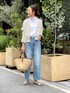 【cardigan】着用サイズ:F 店頭でも大人気のサラッとカーディガン。 今年新色のライトグレーは涼しげに見える人気のカラー。 両サイドと裾にスリットが入るので、動いた時にひらっと揺れる軽さが素敵です。 今回はデニムスタイルでカジュアルにコーディネートしました。 洗濯 :手洗い可 伸縮性:あり 透け感:なし 【cutsewn】着用サイズ:F 1枚で着てもサマになるハイネックTシャツ。 程よくゆとりがあり、ハイネックも締め付けがないのでとても着やすいです。 ネックの後ろ部分にジップがついて立ち上がるデザインに。 着丈はおしり隠れる長さなので安心感があります。 洗濯 :手洗い可 伸縮性:あり 透け感:気にならない 裏地 :なし 【pants】着用サイズ:24 日本のブランド《NEPLA./ネプラ》のハイトーンデニム。 くるぶしが見えるくらいのすっきり丈です。 穿いていくうちに体に馴染むので育てる楽しみが あります。 22〜24サイズ展開 ¥27,280 洗濯 :手洗い可 伸縮性:なし 透け感:なし 裏地 :なし 【bag】 《MAISON N.H PARIS》のカゴバッグ。 ひとつひとつハンドメイドで仕上げられた温かみのあるアイテム。 デイリーに使いやすい大きさで、持ち手と縁のブラックがポイントでかわいいです。 【shoes】 着用サイズ:38 SAANASのフラットシューズ。 最高級レザーを使用したソールで足に優しい履き心地。 人気なのでお早めに。