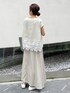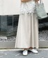 【blouse】着用サイズ:F 《WEB限定》の裾レースブラウス。 今回はスカートでお出かけコーディネートに。 裾にぐるっと入るレースが華やかで、1枚で様になるブラウスです。 ブラウス部分はリネンなので涼しく着られます。 洗濯 :手洗い可 伸縮性:なし 透け感:ベージュは多少あり 【skirt】着用サイズ:1 ウエストリブシリーズのフレアスカート。 シワになりにくい素材なので気軽に穿けて、フレアシルエットで足のラインを拾わないのが魅力のスカートです。 1サイズ着用でくるぶしがミラっと見えるくらいの着丈です。 洗濯 :手洗い可 伸縮性:なし(ウエストはゴムなのであり) 透け感:なし 裏地 :あり 【bag】 Sans Arcidet 【shoes】 着用サイズ:38 柔らかいレザーがとても履きやすいSAANASのスリッポン。 サンダルよりきちんと感があるので夏のおでかけにもぴったりです。