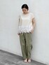 【トップス】着用サイズ:F WEB限定アイテム 裾に紐が通っているので絞ってシルエットを変えられます。 スカートやワイドパンツには少し絞って、パンツスタイルには絞りすぎないでゆったりのまま着ていただくとバランスよく着こなせます。