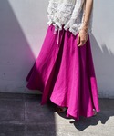 【cutsewn】着用サイズ:F リネンビッグチェックカットソー。 前身頃はカットソーなので伸びがあり、後ろ身頃にリネンのチェック生地がコンビになっています。 コレド店でも人気のライトグレーのカラーはチェックの印象も強すぎず、色物のボトムスとの合わせも素敵です。 丸味のあるシルエットなので、お袖に後ろ身頃の生地がかかり、二の腕カバーしてくれます。 洗濯 :手洗い可 伸縮性:前身頃はあり 透け感:なし 裏地 :なし 【skirt】着用サイズ:F リネンとレーヨン素材のフレア巻きスカート。 広がらず落ち感があり、ドレープが綺麗なシルエット。 鮮やかなピンクはこれからの時期にTシャツやブラウスを合わせて着たい、気分の上がるカラーです。 私の身長でくるぶしがしっかり見える着丈。 巻きスカートですが、右裾の内側にボタンがつくので、ヒラっとめくれず安心です。 洗濯 :ドライクリーニング 伸縮性:なし 透け感:なし 裏地 :なし 【bag】 Sans Arcidet 【shoes】 着用サイズ:39 dragonのグルカサンダル。 24.5cmだと39サイズがちょうど良いです。