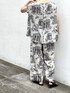 【ブラウス】着用サイズ:F ゆったり涼しいフレンチスリーブのブラウスです。 遺跡柄のトワルドジュイに、文字をプラスしたオリジナルプリント生地を使用しています。 【パンツ】着用サイズ:F ブラウスと同じ生地のワイドパンツ。 セットアップでも着られるのでコーディネートが決まらない日などにも、着るだけでお洒落感が出ます。 【サンダル】着用サイズ:37サイズ FABIO RUSCONI/ファビオルスコーニ