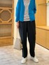 #OTONA SNAP BLUE×GRAY カーディガンの鮮やかなブルーとダークグレーの麻調パンツで大人な色使いのスタイリングに。 【cardigan】着用サイズ:F 大人気のサラッとカーディガンに、鮮やかなブルーのカラーが入荷しました。 Tシャツに羽織るだけで華やかな印象になり、ボタンを閉めて着ればプルオーバー感覚で使えて、気分を変えて楽しめます。 洗濯 :手洗い可 伸縮性:あり 透け感:なし 裏地 :なし 【cutsewn】着用サイズ:F 6/1より店頭にも入荷する、マーケットシリーズ。 こちらは西脇光重さんの版画をモチーフにしたワッペンがワンポイントのボーダーTシャツです。 ベーシックなデザインですが、襟元の黒のラインなどがポイントになって可愛いです。 洗濯 :手洗い可 伸縮性:あり 透け感:気にならない 裏地 :なし 【pants】着用サイズ:F 麻調合繊パンツ。 シワが気にならない素材でケアがしやすいので毎年大人気のシリーズ。 きれい目にもカジュアルにも、シーンを選ばず使えるので重宝します。 洗濯 :手洗い可 伸縮性:なし(ウエストは後ろのみゴム) 透け感:なし 裏地 :なし 【shoes】 着用サイズ:38 MAI MAIのスニーカーが再入荷しています。 見た目以上に軽い履き心地で、ハイカットですが、かかとにジップがつくので脱ぎ履きが楽ちんなスニーカーです。