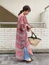 【one-piece】着用サイズ:F 夏らしいカラーとエスニック柄が目を惹く FRIPIER/フリピエの新作ワンピース。 薄手のポリエステル素材で肌に張り付かず さらっとした着心地。 多少透け感があるので見た目も涼しい一枚です。 袖口にはゴムが入っておりたくし上げると ふわっとしたシルエットが素敵です。 細身の白色のパンツなどと合わせると また雰囲気を変えて着ていただけます。 157cmの私で少し後ろに下げて着ると、 後ろ身頃の丈が足首くらいになります。 洗濯 :手洗い可 透け感:あり 伸縮性:なし 裏地 :なし 【bag】 MAISON N.H PARIS/メゾン・エヌ・アッシュ・パリ