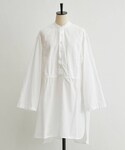 【cardigan】着用サイズ:F カットソー素材のボーダーカーデ。 ゆったりした身幅やアームホールが楽に着られ、ブラウスを重ねても羽織れました。 ボタンの方が少し短めですが、シャツなどレイヤードしてボタン後ろでも着られました。 色々な着方で楽しめる1枚。 スナップボタンで開け閉めできるのも着やすいポイントです。 伸縮性:あり 透け感:なし 裏地 :なし 【blouse】着用サイズ:one size VINCENT JALBERTのシャツチュニック。 アームホールもゆったりで、流行関係なく着られるので長く愛用できる1枚です。 洗濯 :ドライクリーニング 伸縮性:なし 透け感:多少あり 裏地 :なし 【pants】両方とも着用サイズ:2 ドライタッチパンツ:サラっとした肌あたりで涼しく穿けるパンツ。 一度穿くとその穿き心地の良さに驚きます。 明るめなライトグレーのカラーなので透け感が気にならず、秋口にも使いやすい柔らかいお色です。 ウエストはゴムで、紐が通っているので調節ができます。 (手洗い可) 綿タックスリムパンツ:ストレッチ抜群で穿き心地楽ちんなスリムパンツ。 パギンスよりもゆとりがあるので脚のラインが出すぎなくて安心です。 シャツチュニックを合わせたので、裾をロールアップしてすっきりさせました。 (手洗い可) 【bag】 dragon 【shoes】 sample
