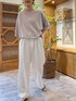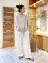 【cutsewn】着用サイズ:F 着心地軽やかでさらっとした肌触りのドライタッチシリーズ。 前裾にドローコードが通っていてきゅっと絞れるようになっています。 お袖は肘が隠れるくらいで羽織ものいらず。 明るめのグレーカラーが柔らかい印象にしてくれます。 洗濯 :手洗い可 伸縮性:あり 透け感:なし 裏地 :なし 【pants】着用サイズ:2 シワが気にならない素材のトラックバギー。 ワイドすぎないシルエットがお仕事用にも使える1本。 2サイズ着用で甲にかかる長さです。 洗濯 :手洗い可 伸縮性:あり 透け感:薄い色のインナー推奨 裏地 :なし 【shoes】 着用サイズ:38 FABIO RUSCONIのメッシュパンプス。 ホワイト×ブラウンのカラーがを着用しています。 甲の部分のVデザインが足をすっと見せてくれます。