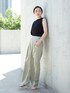 《2サイズ展開》タックルーズパンツ ¥17,600 → ¥8,800(税込) (50%OFF) フロントに左右4タックずつ取り、ヒップに分量を入れボリュームを出したルーズなシルエットのパンツです。 カジュアルさがありながら、さらさらとした肌離れの良い素材を使用し、夏に向けても涼しげで着やすいパンツです。 バックウエストのみゴム仕様で、すっきりとしたシルエットに。 身長に合わせて選べる2サイズ展開。