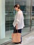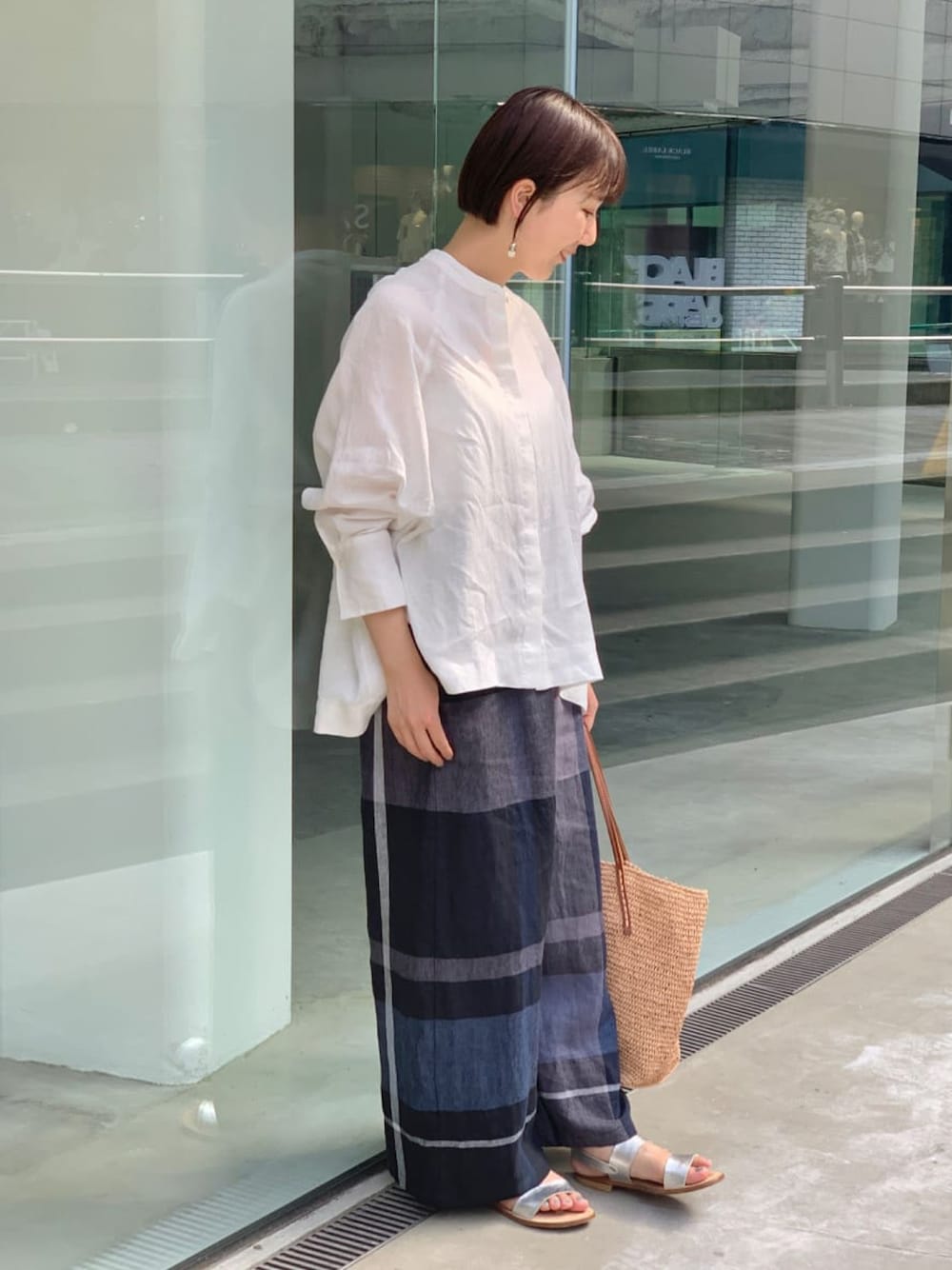 【shirt】着用サイズ:F 夏も快適な、ゆったり着れるリネンシャツ。 シャリ感のあるリネンが涼しく ロングスリーブなので、日除けや冷房対策にもなります。 前後差のある着丈なので 小柄さんもバランス良く着て頂ける1枚です。 153cmの私で、お尻が隠れる着丈になります。 洗濯 :手洗い可 伸縮性:なし 透け感:多少あり 裏地 :なし 【pants】着用サイズ:1 夏にぴったりのリネン素材を使った チェック柄ウエストリブパンツ。 柔らかなリネンで履き心地も良く とても涼やかです。 シンプルなTシャツに合わせるだけで 夏のコーディネートが決まります。 私は1サイズをハイウエストで履いて くるぶしが隠れる着丈になります。 洗濯 :手洗い可 伸縮性:なし 透け感:なし 裏地 :なし 【bag】 Sans Arcidet /¥24,200 【sandal】着用サイズ:37(普段24cm) 柔らかいレザーストラップが 足をしっかりホールドしてくれて、歩きやすいです。 かかと部分のベルトで、サイズ調節も可能です。