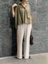 本日2BUY20%ポイント還元開催! 【blouse】着用サイズ:F コットン100%で透け感がある涼やかな生地のブラウス。 さりげなく入るシャドーストライプ柄が近づいた時にも単調な印象に見せない。 肩部分や背中にギャザーを寄せていて、ふんわり立体的なデザイン。 お袖はフレンチスリーブですっきり、前後差のある着丈はワイドパンツやスカートともバランスが取りやすいです。 洗濯 :ドライクリーニング 伸縮性:なし 透け感:多少あり 裏地 :なし 【pants】着用サイズ:2 サラサラと着心地抜群のドライタッチパンツ。 上品なライトグレーのカラーがトップスの色味と合わせやすい。 2サイズ着用でフルの長さです。 ウエスト内側にはドローコードが着くので留める位置でも長さは多少変えられますよ。 洗濯 :手洗い可 伸縮性:なし 透け感:なし 裏地 :なし 【bag】 sample 【shoes】 着用サイズ39 CORSO ROMA 9
