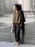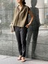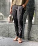 【blouse】着用サイズ:F さりげないストライプが涼しくなブラウス。 前後に入るギャザーでカジュアルさと立体感が出てON/OFF兼用で使えます。 襟元はスキッパーデザインで、顔まわりすっきりして見えます。 開きが気になる方はキャミソールなど入れて着れば大丈夫です。 後ろはおしりがほとんど隠れる長さがあるので安心。 すっきりめのボトムでも、ワイドパンツでもバランスが取りやすい、前後差のある着丈です。 洗濯 :ドライクリーニング 伸縮性:なし 透け感:多少あり 裏地 :なし 【pants】着用サイズ:2 人気のスリムタックパンツからリネン混素材が登場。 ストレッチの抜群さはそのままに、リネンとコットン素材で夏にぴったりの涼やかな生地です。 今回のブラックは、程良くリネンの光沢があり上品な印象になります。 お仕事用のきれいめスタイルにも。 2サイズ着用でくるぶしにかかる着丈です。 洗濯 :手洗い可 伸縮性:あり 透け感:なし 裏地 :なし 【bag,shoes】 sample