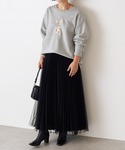 【tops】着用サイズ:F 刺繍だけでなく、丸みのあるシルエットのスウェット。160cmでそのまま着ると、ウエスト部分やお尻周りの隠れる着丈。スカートを合わせるときは少しだけインをするとバランス良く着ていただけます。 洗濯 :手洗い可 伸縮性:あり 透け感:なし 裏地 :なし 裏起毛 【skirt】着用サイズ:F チュールのプリーツが軽やかに揺れるロングスカート 。160cmでくるぶしかかるくらいの着丈なので、フラットシューズもOKです。 ウエストがゴムなので、ウエスト位置を調節すれば身長を選ばないアイテムです。 洗濯 :ドライクリーニング 伸縮性:ウエスト部分ゴム 透け感:なし 裏地 :なし 【necklace】 チェーンの先端にコロンとイミテーションパールのついたネックレス。チェーンのどの位置でも留め具をつけられるので、長さの調整も自由自在。 今回はウサギの刺繍に合わせて、パールを後ろに、チェーンだけ見えるように合わせました。 真鍮にゴールドコーティングになりますので、金属アレルギーの方はタートル、シャツの上から付けていただくと安心です。 素材:真鍮・スワロフスキーパール(ガラス)