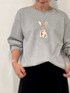 【tops】着用サイズ:F 刺繍だけでなく、丸みのあるシルエットのスウェット。160cmでそのまま着ると、ウエスト部分やお尻周りの隠れる着丈。スカートを合わせるときは少しだけインをするとバランス良く着ていただけます。 洗濯 :手洗い可 伸縮性:あり 透け感:なし 裏地 :なし 裏起毛 【skirt】着用サイズ:F チュールのプリーツが軽やかに揺れるロングスカート 。160cmでくるぶしかかるくらいの着丈なので、フラットシューズもOKです。 ウエストがゴムなので、ウエスト位置を調節すれば身長を選ばないアイテムです。 洗濯 :ドライクリーニング 伸縮性:ウエスト部分ゴム 透け感:なし 裏地 :なし 【necklace】 チェーンの先端にコロンとイミテーションパールのついたネックレス。チェーンのどの位置でも留め具をつけられるので、長さの調整も自由自在。 今回はウサギの刺繍に合わせて、パールを後ろに、チェーンだけ見えるように合わせました。 真鍮にゴールドコーティングになりますので、金属アレルギーの方はタートル、シャツの上から付けていただくと安心です。 素材:真鍮・スワロフスキーパール(ガラス)