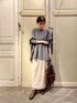 【tops】着用サイズ:F ビアズリーで毎年人気のビッグニットが登場。 コットン素材なのでチクチク感もなく柔らかい肌触り。 これから秋に一枚で着るのにぴったりです。 袖口のリブを長めに取っているので、 メリハリが付き大きく見えないシルエットに。 お尻にかかるくらいの着丈なのでスカート、ワイドパンツ、 細身パンツなど何にでも合わせやすいのが嬉しいですね。 洗濯 :手洗い可 透け感:なし 伸縮性:あり 【skirt】着用サイズ:F ランダムに揺れるプリーツが女性らしいロングスカート。 落ち感がありあまり広がらないデザインが コーディネートをすっきり見せてくれます。 裏地が付いているので透け感を気にせず履けるのが嬉しいポイント。 ウエストは平ゴムを使用し、とても楽な履き心地です。 157cmの私で足首が隠れる長さです。 洗濯 :ドライクリーニング推奨 伸縮性:ウエスト部分あり 透け感:なし 裏地 :あり 【shoes】着用サイズ:39 毎年大人気の“KUDETA/クーデター”のショートブーツ。 薄く柔らかなレザーを使用し、履く度に足に馴染みます。 普段24.5cmの私だと39サイズは少しゆとりがあり 38サイズだとジャストになります。