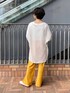 【tops】着用Fサイズ フリピエのメッシュトップスです。 ゆるっとオーバーサイズで落ち感がお洒落。 細かいメッシュなので着やすいです。 洗濯 :ドライクリーニング 透け感:あり 裏地 :なし 伸縮性:あり 【pants】着用Fサイズ フリピエのバイヤスサテンパンツです。 テロテロした素材で履き心地◎ ウエストは全ゴムなのでとても楽です。 長めのトップスや、チュニックなどと合わせるのがオススメです。 洗濯 :手洗い可 透け感:なし 裏地 :なし 伸縮性:ウエストあり