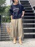 【sweat】着用サイズ:F スタッフ人気も高いプリントドルマントレーナー。 しっかりハリ感のある生地は高級感があり、ロゴプリントもラフすぎない大人なデザイン。 ドルマンスリーブなので、きゅっとお袖を上げて着た時のゆったり感がまた素敵。 肉厚であたたかいので、時期長く楽しめそうです。 洗濯 :手洗い可 伸縮性:多少あり 透け感:なし 裏地 :なし 【skirt】着用サイズ:1 レザー見えする光沢感がコーディネートにスパイスを与えてくれるスカート。 ウエストゴムで、はき心地楽ちんで軽いです。 1サイズ着用でくるぶししっかり見える着丈。 タックが入るのでギャザーよりもボリューム感が出にくいデザインです。 洗濯 :手洗い可 伸縮性:なし(ウエストはゴム) 透け感:なし 裏地 :あり 【bag】 2.718 ¥22,000 【shoes】 sample