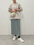 【cutsewn】着用サイズ:F 人気のダンボールシリーズに今季はフレアタイプが入荷予定。 マシュマロのような弾力のある生地なので、体のラインを拾わず上品な雰囲気に。 お袖のタックも惹かれるポイントです。 ピンク味のあるベージュのカラーはお顔映りも暗くなりません。 襟元も開かず安心ですが、生地に伸縮があるので脱ぎ着も楽ちんです。 私の身長でおしりほとんど隠れる長さ。 デイリーに使いやすい1枚です。 洗濯 :手洗い可 伸縮性:あり 透け感:なし 裏地 :なし 【skirt】着用サイズ:1 ウエストリブデザインのスカート。 タイトすぎないIラインシルエットがきれいめにも使える1枚。 ブークレダンボール生地で伸縮があり、凹凸感のある生地なのでさっぱりしたトップスを合わせた時にも表情が出て寂しく見えません。 今回は1サイズ着用でくるぶしがしっかり見える着丈。 ウエストもジャストサイズです。 洗濯 :手洗い可 伸縮性:あり 透け感:なし 裏地 :なし 【bag】 フラップデザインのミニショルダー。 長さ調節もできるのでアウターの上からも掛けられます。 【shoes】 CONVERSE(ZOZOTOWNにて販売中)