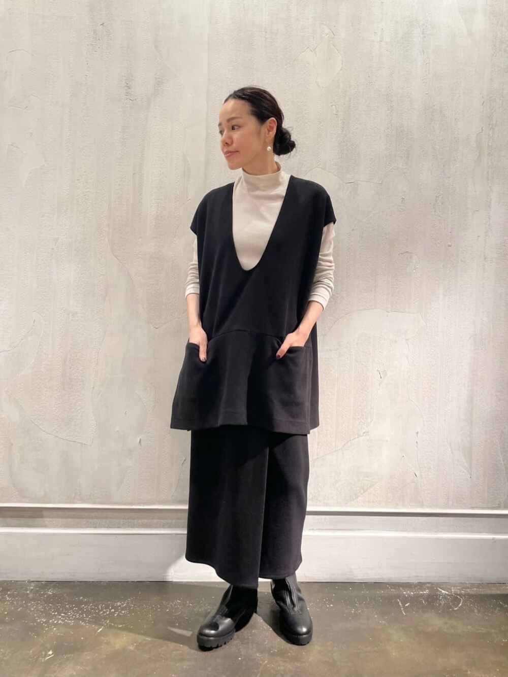 【pullover】着用サイズ:F 人気の“ブークレシリーズ”より 今年もプルオーバーが登場します フレンチスリーブで襟ぐりが広く お尻周りまで隠れるIライン 体型気にせずリラックスして 着れるアイテムなので ボトムを選ばないところも嬉しいポイント 洗濯 :お家で洗える 伸縮性:あり 透け感:なし 裏地 :なし 【bottom】着用サイズ:0 タイトシルエットですが ラップ風になっているので ストレッチが効いていて 動きやすいデザイン 1サイズは私が着るとくるぶし丈 0サイズで足首がしっかり見えます 洗濯 :お家で洗える 伸縮性:あり 透け感:なし 裏地 :なし