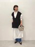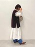 ぽこぽこしたブークレー素材のプルオーバー。 タンクトップや半袖カットソー、リブニットやシャツワンピースの上からベスト感覚で着ていただけます。 サイドに深めのスリットがあり、生地はざらっとした肌触りで、ブークレー素材でもほっこりしない印象です。 前についた両サイドのポケットがアクセントに。 セットアップで着用可能なスカートもご用意ございます。