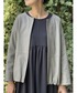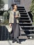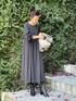 【one-piece】着用サイズ:1 大人気のジャージーギャザーワンピースに新色のチャコールグレーのカラーが登場。 ブラックはきりっと引き締まり、チャコールグレーは比較的優しい印象になります。 アウターに明るいお色が多い方は、コントラストが強くなりすぎないのでこちらのカラーがおすすめです。 166cmで1サイズ着用でくるぶし上10cmほどの着丈。 胸下のギャザーがアクセントで、落ち感のある生地なので広がりが気にならない美シルエット。 シワにもなりにくいのでご旅行などにもピッタリです。 洗濯 :手洗い可 伸縮性:多少あり 【blouson】着用サイズ:1 ラムレザーの柔らかいマットな質感がハードな印象にならないビアズリーのレザーブルゾン。 裾のギャザーも女性らしいデザインです。 ワンピースと合わせてお食事会などのご予定にも着ていける上品なレザーです。 洗濯 :クリーニング 裏地 :あり