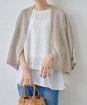 【blouse】Fサイズ シャツTシャツのネイビー。 チェックパンツのネイビーとワントーンでおしゃれ感をプラス。 お袖の切り替えがきゅっとあげられるので着やすいです。 裾もきゅっと絞れる紐付きです。 洗濯 :手洗い可 伸縮性:お袖のみあり 【cardigan】Fサイズ 昨年も大人気だったサラットカーデ。 今年は鮮やかなカラーで登場です。 (店舗にも入荷予定) ホワイトは万能で合わせやすく、 ブルーは新鮮さをプラス、 オレンジはパッと華やかな印象にしてくれます。 【pants】1サイズ着用 今年は《WEB限定で》で登場のウエストリブリネンチェックパンツ。 大きめなビッグチェックが大人なリラックス感のある雰囲気に。 サンプルなので1サイズ着用していますが、165cm以上の方は2サイズがオススメです。 洗濯 :手洗い可 透け感:なし 裏地 :なし