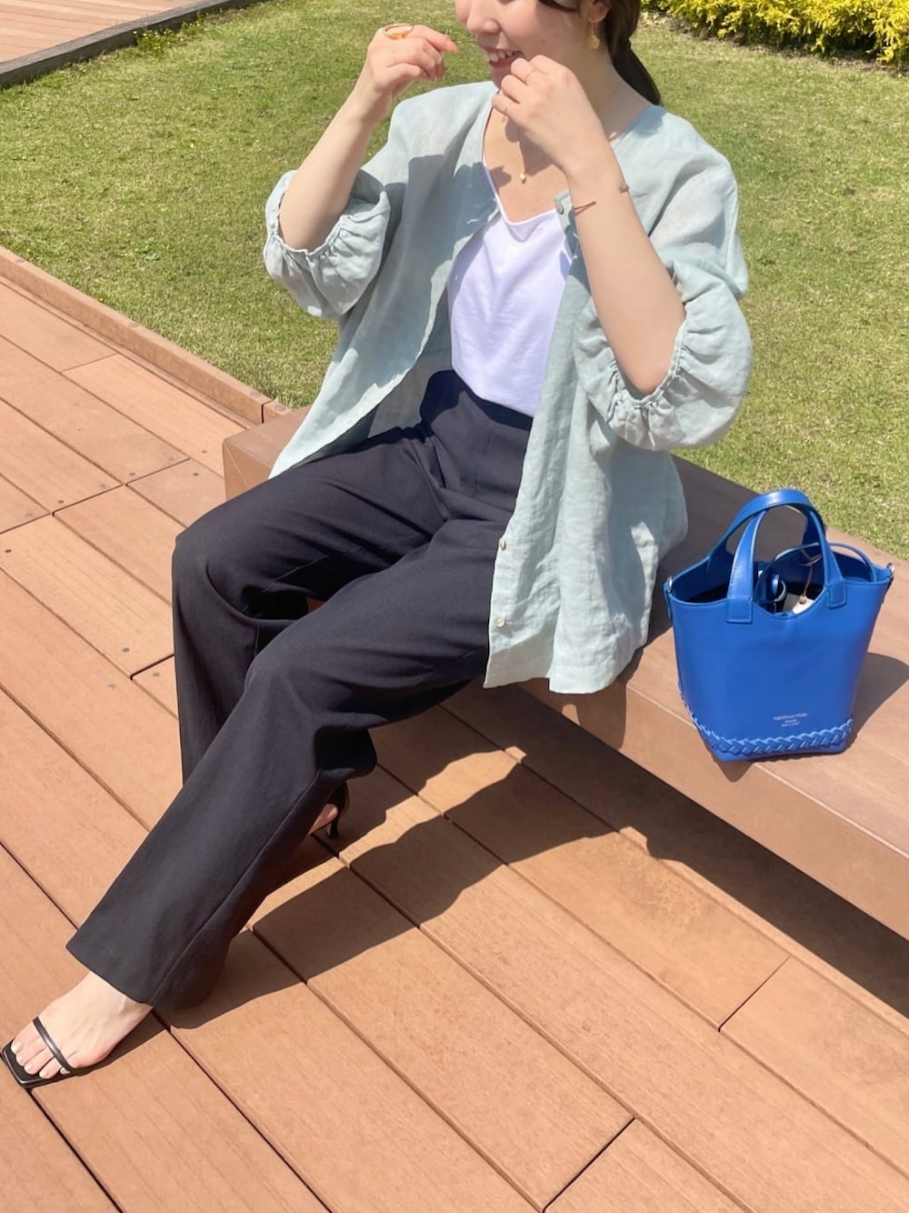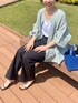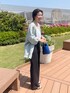 爽やかなカラー展開のリネンブラウスは 前後で着られる2way仕様。 ボタンを前にして羽織りのようにも着られます。 これから夏に向けて、さらっとしたリネンアイテムは重宝しますね。 手首が覗く程度の袖丈なので、日除けや冷房対策で 夏でも腕を出したくない方にもおすすめです。 洗濯 :手洗い可 伸縮性:なし 透け感:多少あり 【pants】着用サイズ:1 シルエットの綺麗なストレートパンツ。 2サイズ展開。154cmで1サイズを着用しています。 ワイド過ぎず、脚が綺麗に見える幅感のパンツは オーバーシルエットのアイテムとも好相性。 洗濯 :手洗い可 伸縮性:多少あり 透け感:なし 光沢感:なし