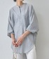 【blouse】Fサイズ 綿麻ポリエステル混紡の、ほんのり光沢感とシワ感があるブラウス。 涼しげなライトグレーのカラーがデイリーにも、お仕事シーンでも活躍しそうな1枚。 バンドカラーなので首周りもスッキリ、背中にはタック入りで1枚でコーディネートが完成するデザイン。 おしり隠れる着丈で安心です。 洗濯 :手洗い可 伸縮性:なし 透け感:気にならない 裏地 :なし 【pants】1サイズ ビアズリーの美脚パンツ、タックスリムパンツ。 着用しているのはオンラインのみで追加予約しているハイテンションスリムタックパンツ。 伸縮性抜群で楽ちん、シワにならない、そして美脚に見える、言うことなしな1本。 今店頭には綿のタイプが入荷中。 これから朝のタイプが入荷します。 洗濯 :手洗い可 伸縮性:あり 透け感:気にならない 裏地 :なし