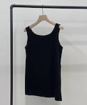定番のウエストリブパンツとの組み合わせ カラーはベージュを合わせて 夏のブラックコーデにこなれ感をプラス