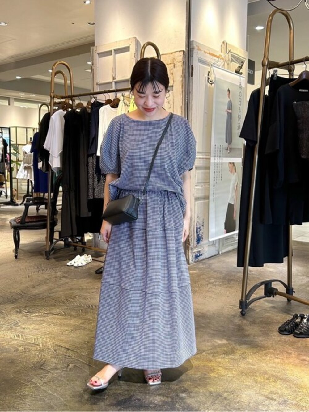 【tops】着用サイズ:F ふんわり立体的なバルーンスリーブのカットソー。 綿とポリエステルで伸縮性があり、さらっと軽い着心地です。 インしてもシワにならず、アウトで着ても長すぎないので小柄な方も着やすいサイズ感です。 洗濯 :手洗い可 伸縮性:あり 透け感:なし 裏地 :なし 【skirt】Fサイズ