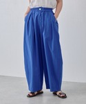 【tops】着用サイズ:F ゆったりと楽に過ごせるシンプルTシャツ。 身頃がたっぷり取っているので風も抜け涼しいです。 透け感があり見た目にも涼しい素材感です。 【pants】着用サイズ:F コクーンシルエットがお洒落なデザイン。 ウエストはゴムでフィット感があります。 鮮やかなブルーが夏に映えるカラーです。