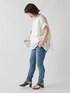 MIYAZAWA 150cm デニムパギンス合わせ 低身長さんは細身のパンツも合わせやすい着丈 すっきり見せたいときはヒールのサンダルを。