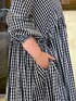 【one-piece】1サイズ(Mサイズ着用) 大人気シリーズのワンピースです。 私も大好きで、シリーズが出るたびにリアルバイしてしまいます♪ ギャザーたっぷりしていますが、お洗濯しているうちに生地が馴染んできます。 着痩せポイントは、私は首が太いのでボタンを全部締めず2番目のボタンまであけて着てます! お袖もゴムが入っているので、手首見せて着るとスッキリします。 ゴムがキツく感じた時は、ゴムを折り返してから、腕まくりをすると痛さが半減します。 オススメです!! 着丈は、1サイズで足首見えるくらいです。 チェック柄は、ストライプに比べて生地が厚めです。 シワが気にならないくてオススメですよ♪ ぺたんこサンダルとヒールで履いてみました♪ ご参考になれば嬉しいです。 洗濯 :手洗い可 伸縮性:なし 透け感:なし 裏地 :なし