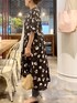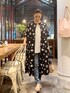 【onepiece】着用サイズ:F ドットプリント生地に、サークル刺繍を施したワンピース。 ウエスト切り替え部分にもギャザーを寄せています。 前ボタンなのでワンピースとしてはもちろん、羽織としても着回せます。 同じ生地でノースリーブブラウスもございます。 【pants】着用サイズ:1 生地が柔らかく、レギンス感覚のストレッチパンツ。 フィット感がありバランス良く履けます。