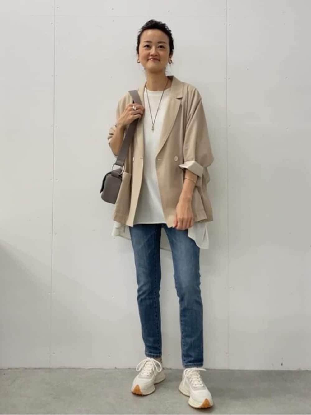 シアードルマンジャケットをデニムとスニーカーでカジュアルにコーディネート。 カーディガン感覚で羽織れるので、普段気軽に羽織れるジャケットです。 レザーボディバッグの新色トープ。 汚れが気になりにくい落ち着いたグレージュのカラーがこなれた印象。 マチも広めで、500mlのペットボトルが横に入るサイズ感です。