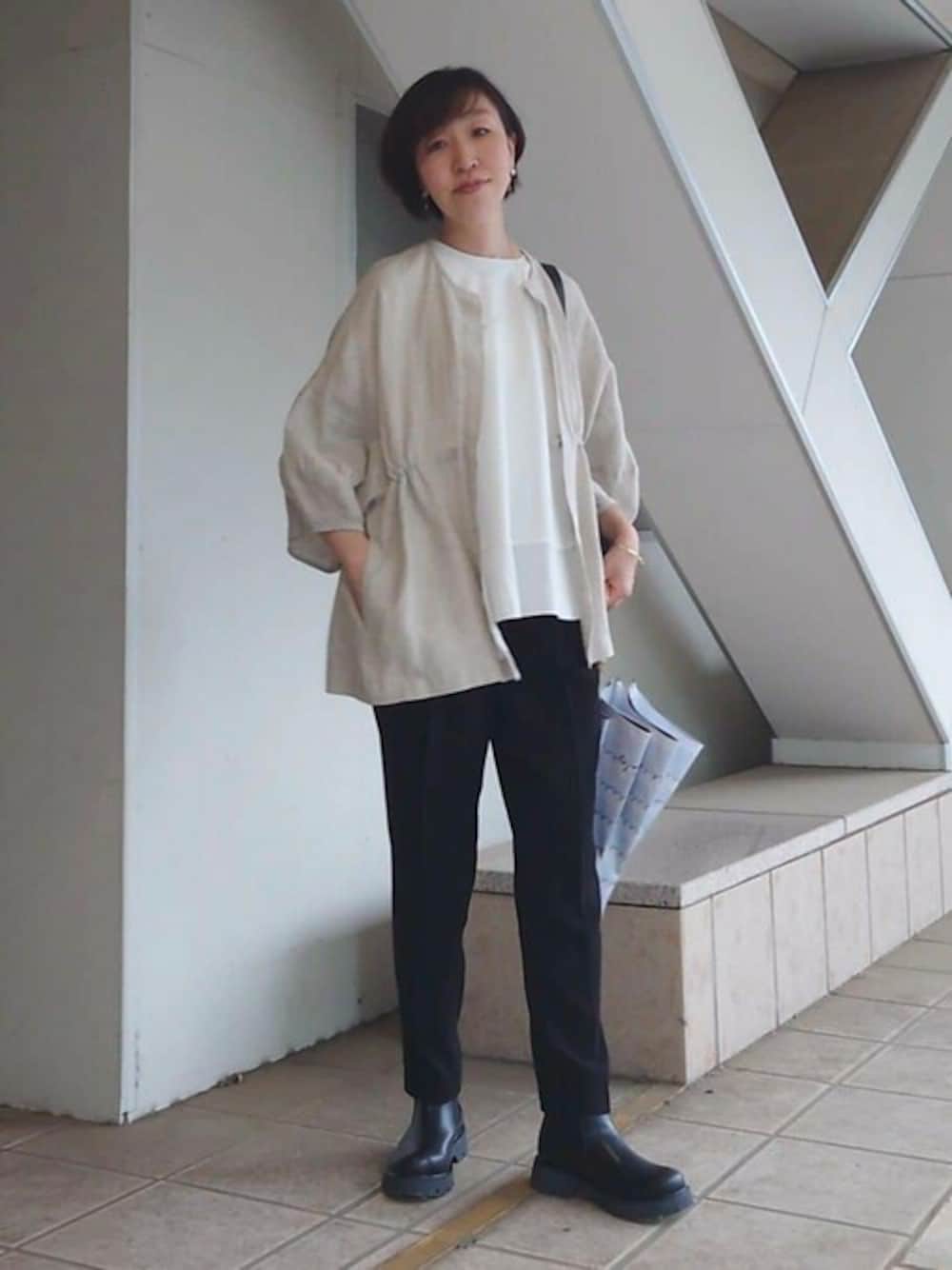 雨の日におすすめのコーディネートです! 【shoes】24cm着用 いつものサイズでも履けますが、ちょうどピッタリてしたので1サイズ上げるのがおすすめです。(少し厚手の靴下を履くとキツく感じる) デザインはプレーンでそこまでゴツくなので、色々な服装に合わせられて1足あると安心です!