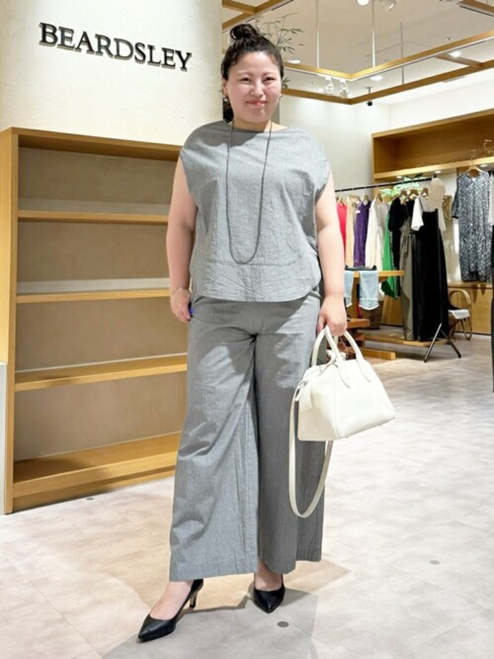 【ボトム】着用1サイズ いつもは、2サイズを着ています。 着丈少し長めです。 私は、お腹周りやヒップが大きいのでポケットは開いてしまいます。 カーディガンやジレなど、着丈の長いトップスを着れば問題なく着れました! マイナス3キロ見えパンツです!!!! パンツのラインが綺麗なので、スッキリ着れました♪ ウエストも、キツくなかったです。 【トップス】 パンツとお揃いで着れるブラウスです。 私は、二の腕気になってしまいますが、涼しいく着れます。 お腹は隠れるので安心ですが、お尻は少しでました。 羽織りを着たら安心です。