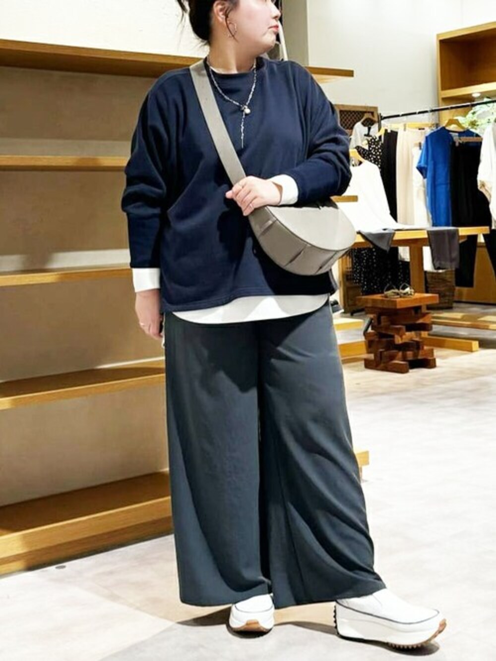 【トップス】 柔らかいスエットです。 メンズライクなスエットと違い、遊びごころがあるので大人女性が着ても部屋着感なく着れて嬉しい!! 横にジップがあるので、インナーチラッと見せてもかわいいです。 【インナー】 0サイズ 着れない事はないのですが、、、 ⚫︎胸がつっぱる感じが気になります。 ⚫︎お袖は二の腕や袖丈は気にならなかったです。 ⚫︎着丈はちょうどいいですが、パンツスタイルの時はお尻出ます。 ⚫︎後ろは、お尻が大きくのでシワがドレープのようになります。私は気になってしまいます。 フリーサイズ ⚫︎安心感のあるサイズ感 ⚫︎胸のライン気にならないです。 ⚫︎お袖は少し私の腕だと長いので、手首を出して着るとちょうど良い。 ⚫︎後ろは、お尻気にせず着れます。 私の体型ですと、身体のラインをひろわないフリーサイズがすっきり着れるかな?と思います。 腰まわりやお尻が気になる方は、フリーサイズがおすすめです。 【ボトム】2色リアルバイ 着痩せパンツです! トロミ感があって足のライン気にせず履けるのが嬉しい!!!! さらさらしていてシワが気にならないので重宝してます。 着丈長めなので、ヒールやスニーカーの靴底厚めので合わせて着てます。 とにかく着痩せして見えるのが嬉しいパンツです。