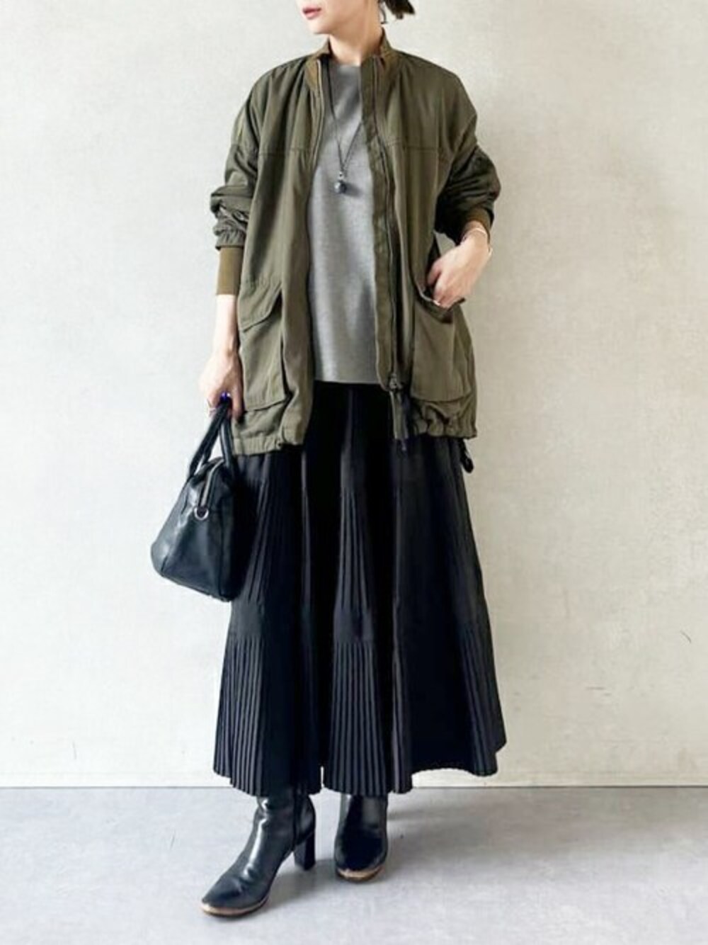 このma-1はフレアラインでメンズっぽくなりすぎないし、ボリュームも出ないからスッキリと着られますよ。 スカートやワンピにも合うしサッと羽織るのに便利! 一枚あると間違いない!アウターです。