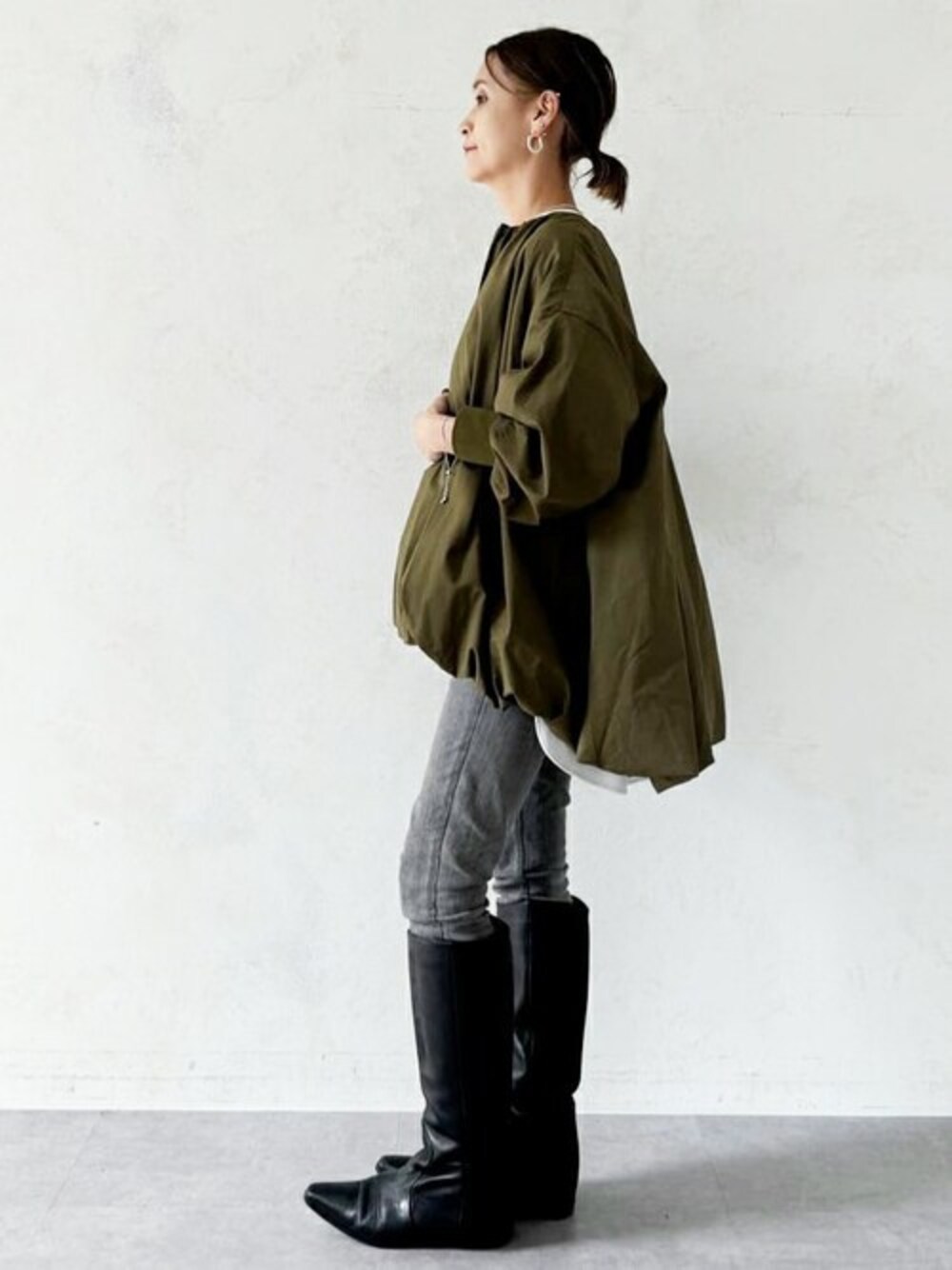 ノーカラージャケット (グリーン系)ノーカラージャケット